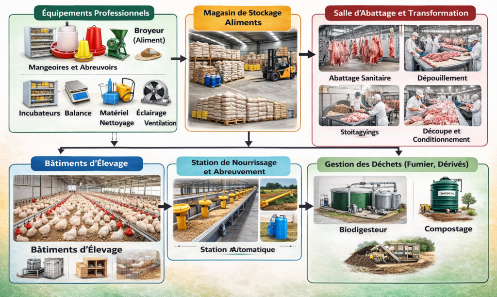 Notre ferme avicole mixte est une exploitation intégrée qui maîtrise toute la chaîne de valeur : de l’élevage à la transformation agroalimentaire.